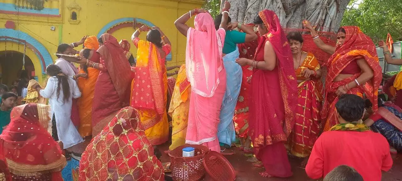 बाढ़ में बट सावित्री व्रत को लेकर गंगा घाट पहुंची सुहागन महिलाएं