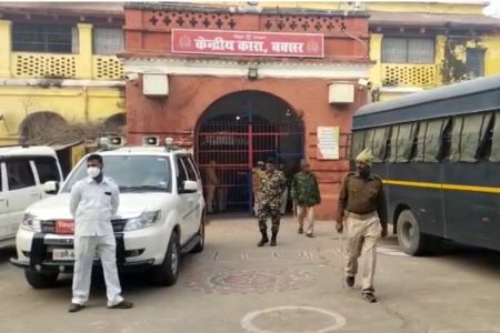 बक्सर में पंचायत चुनाव को लेकर शनिवार को तड़के करीब चार बजे सुबह में सेंट्रल जेल में छापेमारी की गई. डीएम अमन समीर और एसपी नीरज सिंह खुद लाव-लशकर लेकर जेल के अंदर पहुंचे और एक-एक वार्ड खंगाला. इस दौरान खैनी और चुनौटी के अलावा कुछ नहीं मिला. सुबह में अचानक डीएम-एसपी के जेल के अंदर पहुंचने से कैदियों के बीच हड़कंप मच गया. करीब तीन घंटे तक चली छापेमारी में पुलिस ने सेंट्रल जेल के सभी वार्डों की तलाशी ली. वार्डों के अंदर से तो कुछ नहीं मिला, लेकिन मैदान से खैनी और चुनौटी बरामद हुई. एसपी नीरज सिंह ने जेल की सुरक्षा व्यवस्था का जायजा लिया. जेल में हुई छापेमारी से कैदियों के बीच हड़कंप मच गया. डीएम अमन समीर ने बताया कि सरकार के आदेश पर जेल में औचक निरीक्षण किया गया. इस दौरान खैनी-चुनौटी जैसी चीजें मिली हैं.अब यह पता लगाया जाएगा कि जेल के अंदर ये चीजें आखिर पहुंची कैसे? डीएम-एसपी ने कैदियों को शांतिपूर्वक जेल मैन्युअल का पालन करने का निर्देष भी दिया. मौके पर सदर एसडीएम रोहित कुमार, सदर एसडीपीओ गोरख राम, डुमरांव एसडीपीओ श्री राज, नगर थानाध्यक्ष दिनेश कुमार मालाकार, औद्योगिक थानाध्यक्ष मुकेश कुमार, मुफस्सिल थानाध्यक्ष अमित कुमार, नगर सर्किल इंस्पेक्टर मुकेश कुमार, सदर इंस्पेक्टर मनोज कुमार, इटाढ़ी थानाध्यक्ष राजेश कुमार मालाकार समेत कई थानों की पुलिस मौजूद थी.