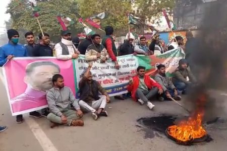 सड़कों पर उतरे जाप कार्यकर्ता,आगजनी कर किया रोड जाम