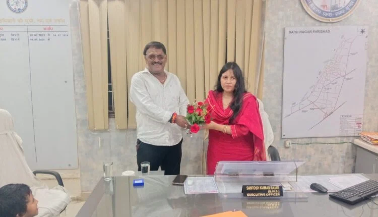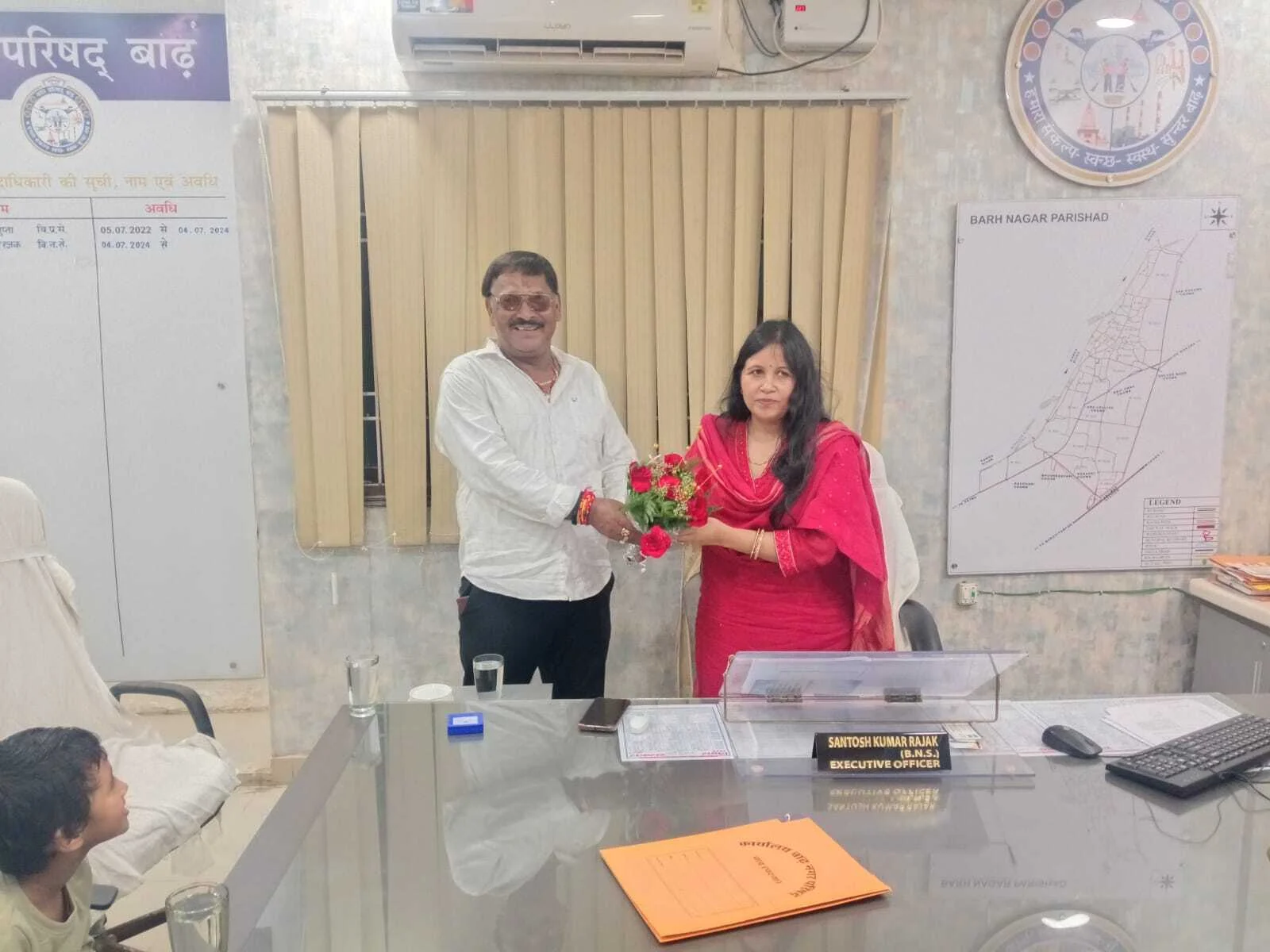 बाढ नगर परिषद के नए कार्यपालक पदाधिकारी कुमारी हिमानी का स्वागत बुके देकर नगर परिषद के अध्यक्ष संजय कुमार ने की। वर्तमान कार्यपालक पदाधिकारी संतोष रजक का तबादला मोकामा हो गया था उनके जगह पर नए कार्यपालक पदाधिकारी के रूप में कुमारी हिमानी ने अपना योगदान दिया। उनके आने से नगर परिषद कमी में काफी खुशी है वहीं लोगों की अपेक्षा है कि नए पदाधिकारी नगर क्षेत्र में विकास के लिए और लोगों को हित में सतत काम करेंगे। और नगर का विकास निरंतर होता रहेगा।