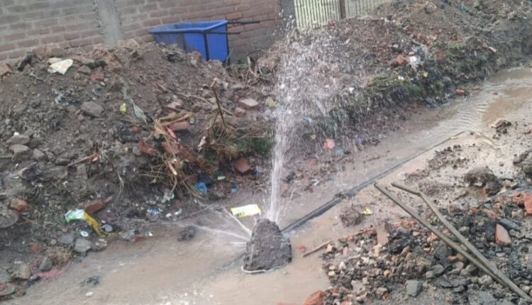 पानी का पाइप फट जाने के कारण मलिक लोगों