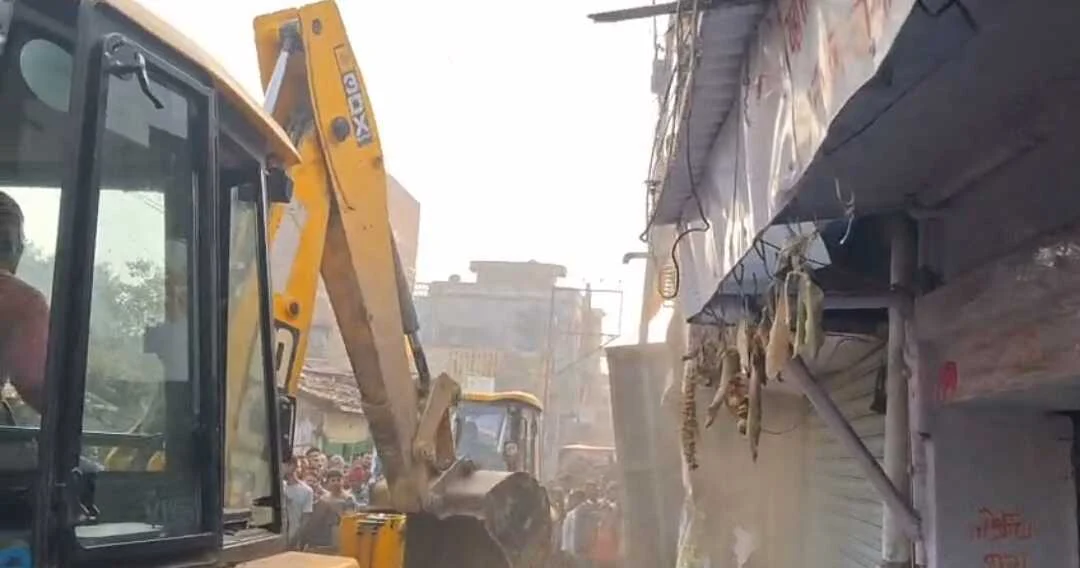 बाढ में भी शुरू हुआ बुलडोजर एक्शन