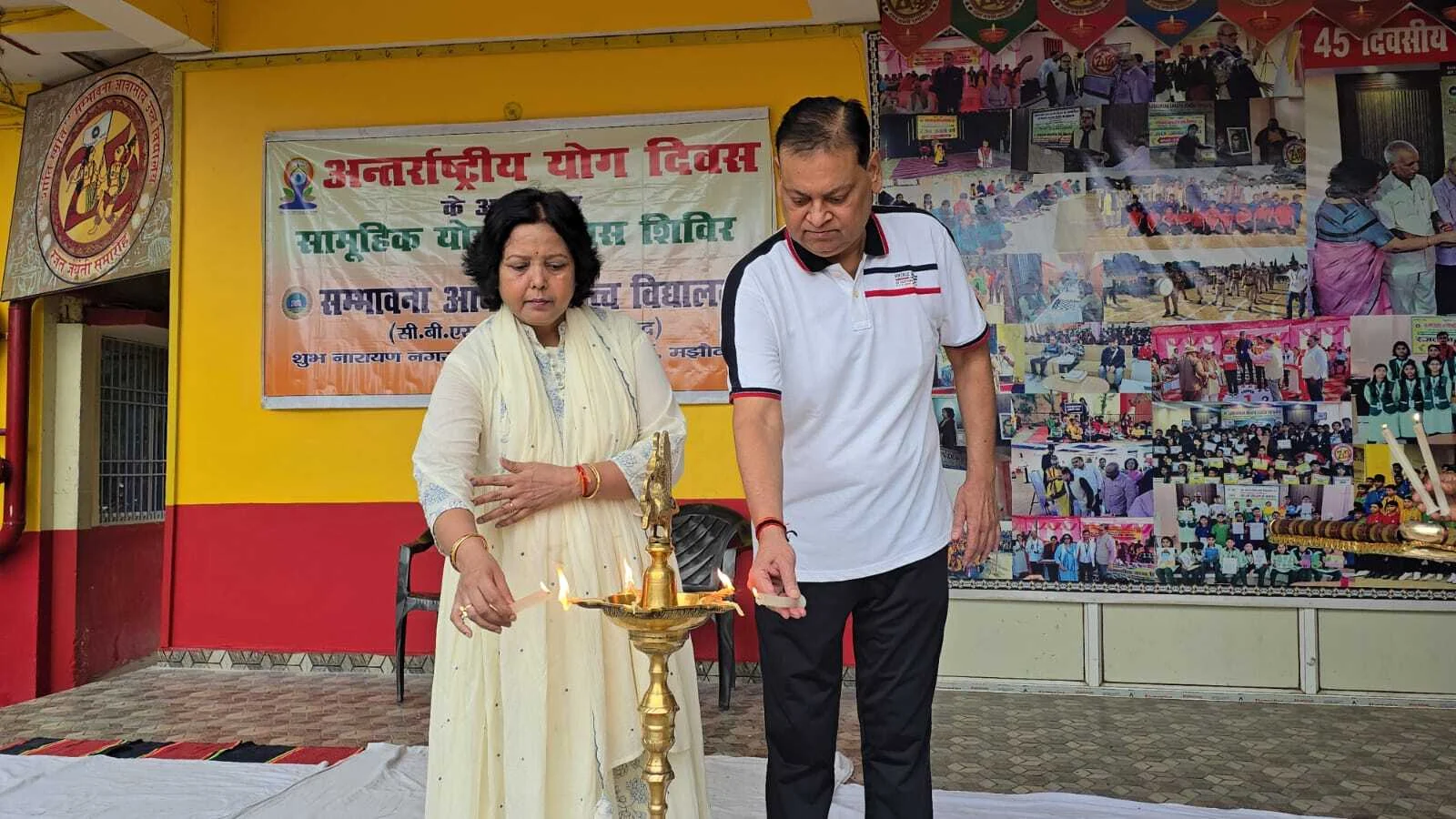 योग दिवस समारोह का उद्घाटन विद्यालय के प्रबंध निर्देशक डॉ० कुमार द्विजेन्द्र और प्राचार्या डॉ० अर्चना सिंह ने संयुक्त रूप से दीप प्रजज्वलित कर किया।
