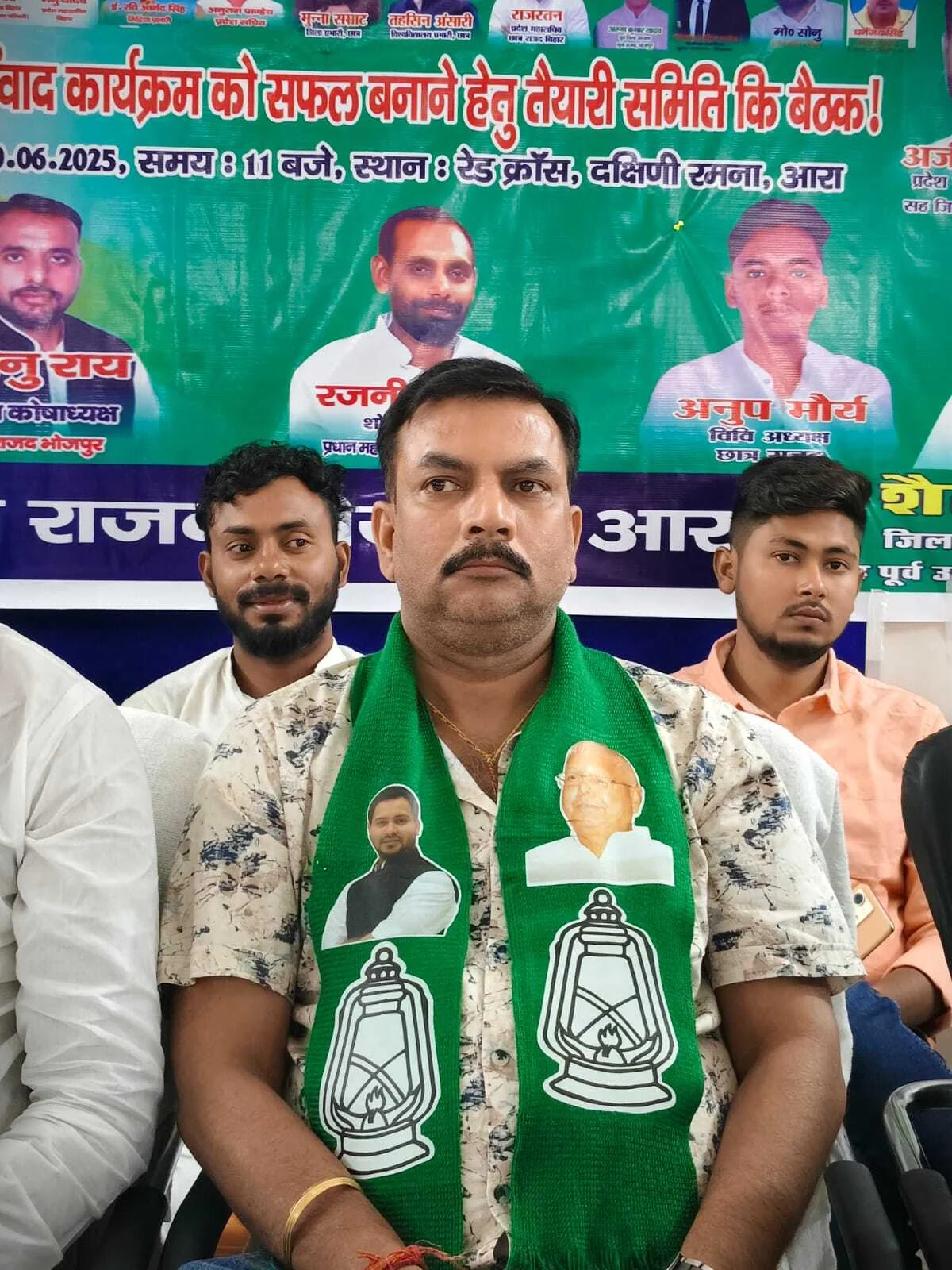 कार्यक्रम का संचालन रजनीश यादव ने किया. कार्यक्रम में सभा को संबोधित करते हुए शैलेन्द्र राम ने आगामी 26 जून को होने वाले युवा छात्र संवाद कार्यक्रम के लिए राजद के युवा साथियों से आग्रह किया कि वे ज्यादा से ज्यादा संख्या में बापू सभागार पहुंचे. उन्होंने कहा कि भोजपुर से 5000 युवाओं को ले जाने का टारगेट है. अब देखना यह होगा कि आप सभी के सहयोग से यह संख्या और कितना बढ़ती है. प्रखण्ड से आए सभी नेताओं ने उपस्थित युवाओं को जागृत करते हुए कहा कि 26 जून को आप सभी पटना चलने की तैयारी कीजिए.